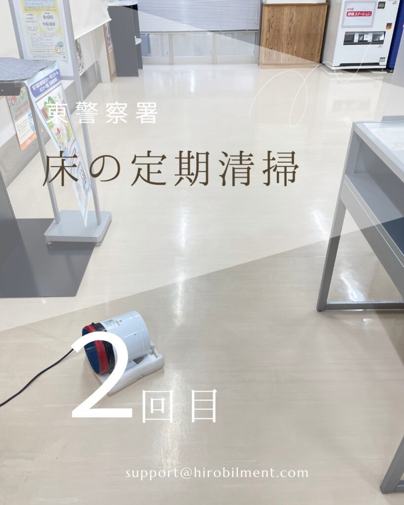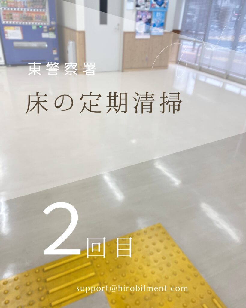 広島県東警察署の床の定期清掃を実施しました。以下の内容で作業を行い、施設の清潔性と美観を維持しました。