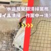 清掃前( 左) は、日々の汚れが蓄積し、本来の清潔感が失われた状態です。